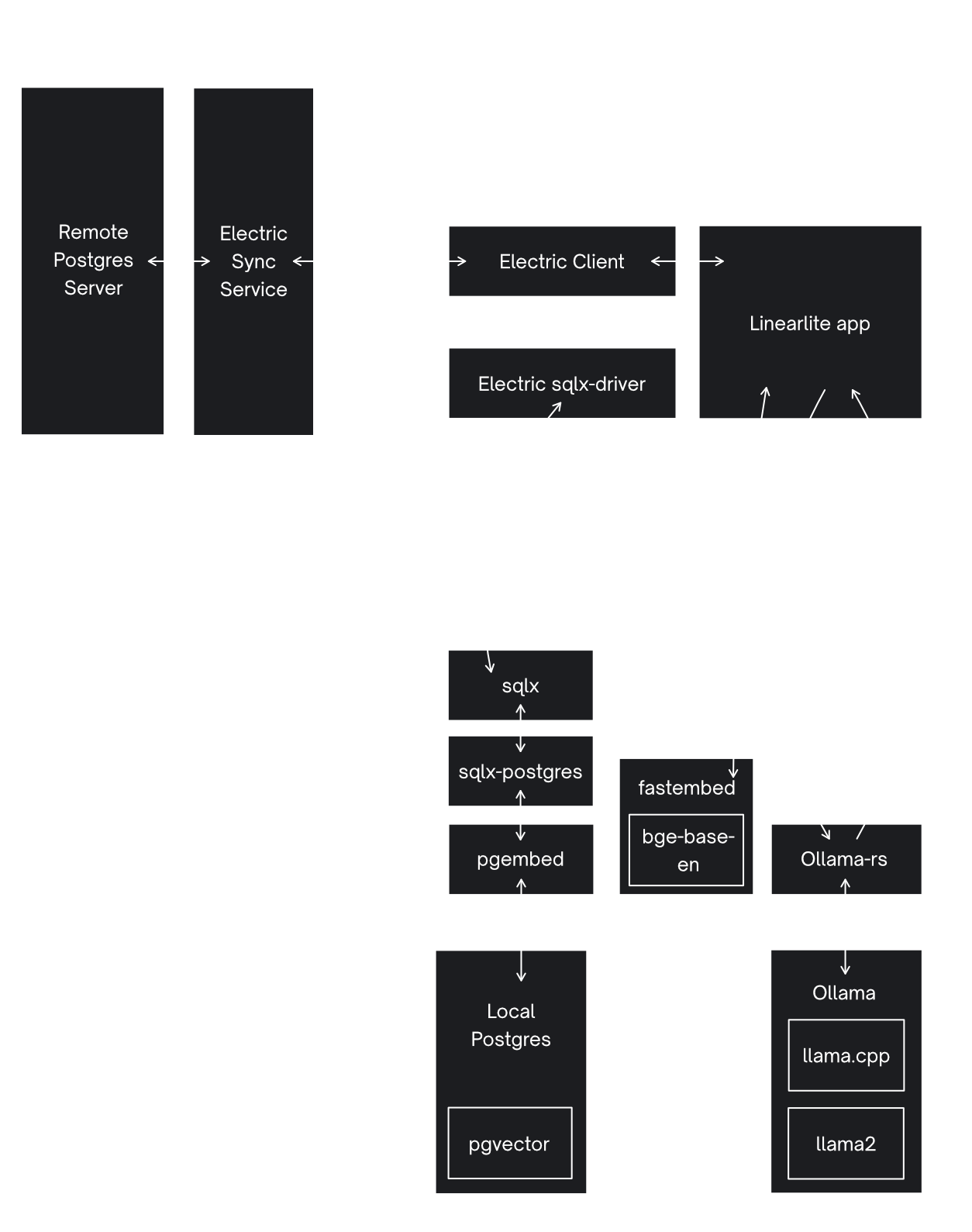 This led us on a wild technical journey where we took Postgres, bundled it with pgvector and compiled it to run cross platform inside the Rust backend of a Tauri app. We then compiled llama2 and fastembed into the same Tauri app and built a fully open source, privacy preserving, local AI application running both vector search and RAG.